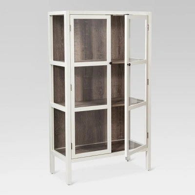 The Hadley Library Cabinet with Glass from Threshold™ combines the elegance of glass with a rustic wood look. This cabinet is the perfect furniture for displaying precious antiques and collectibles on any of its three fixed shelves. Its sleek and simple design blends easily with any decor from traditional to mid-century modern to contemporary. with easy instructions this cabinet is a breeze to put together. This sturdy cabinet comes complete with anti-tip hardware to ensure you and your family are safe.