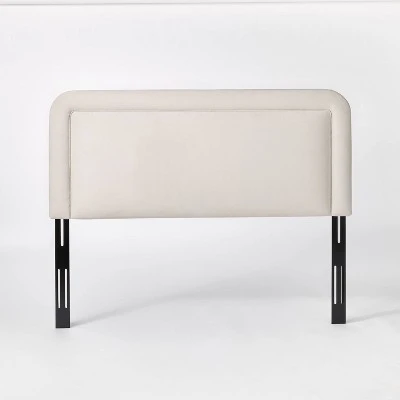 Upgrade your bedroom furniture with this Berkeley Headboard from Threshold™ designed with Studio McGee. This rectangular headboard features a bordered design with rounded corners and is lightly padded to offer a soft, comfortable spot for reading or watching TV in bed. Upholstered in cream fabric, it easily blends with any existing decor. Simply pair with a box spring, bed frame, mattress and your choice of bedding to complete the look.