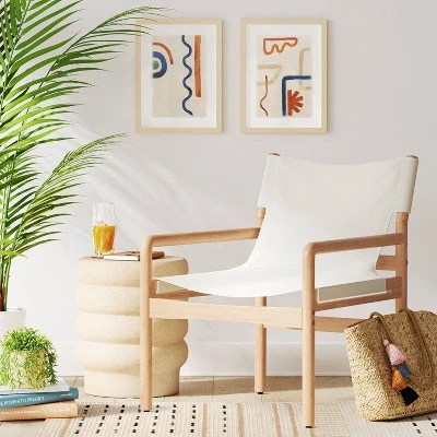 Keep your seating ensemble simple yet unique with this Northlake Dowel Frame Sling Accent Chair from Threshold™. The natural wooden frame with clean lines creates a sophisticated look that suits your aesthetics well. Upholstered in a textured cream fabric, this wood-frame accent chair adds comfort and chic style to your space. Just add a sling ottoman to create a complete relaxing spot.